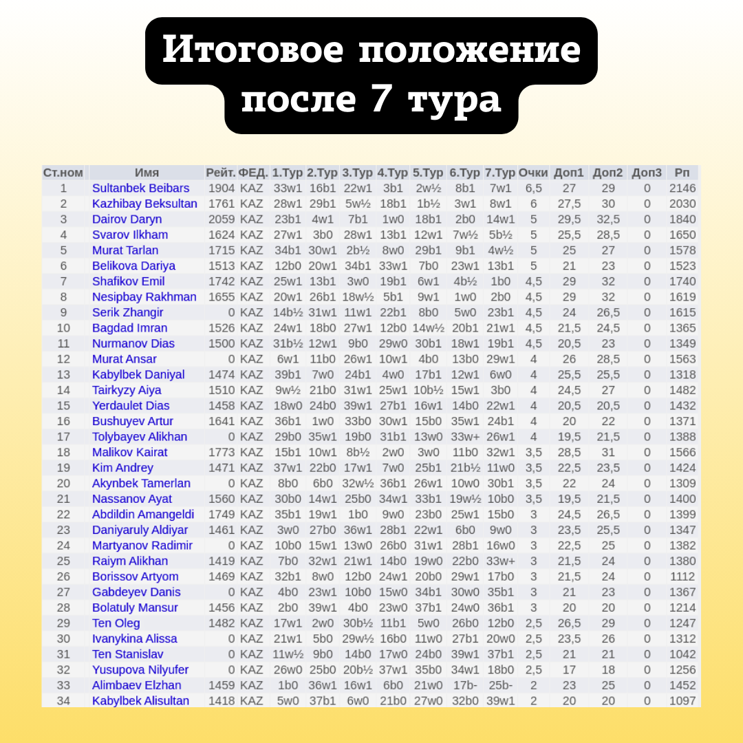 📅 Турнир прошел 5 октября, и участие приняли ребята до 16 лет. Было проведено 7 туров по швейцарской системе с контролем времени 10+5.