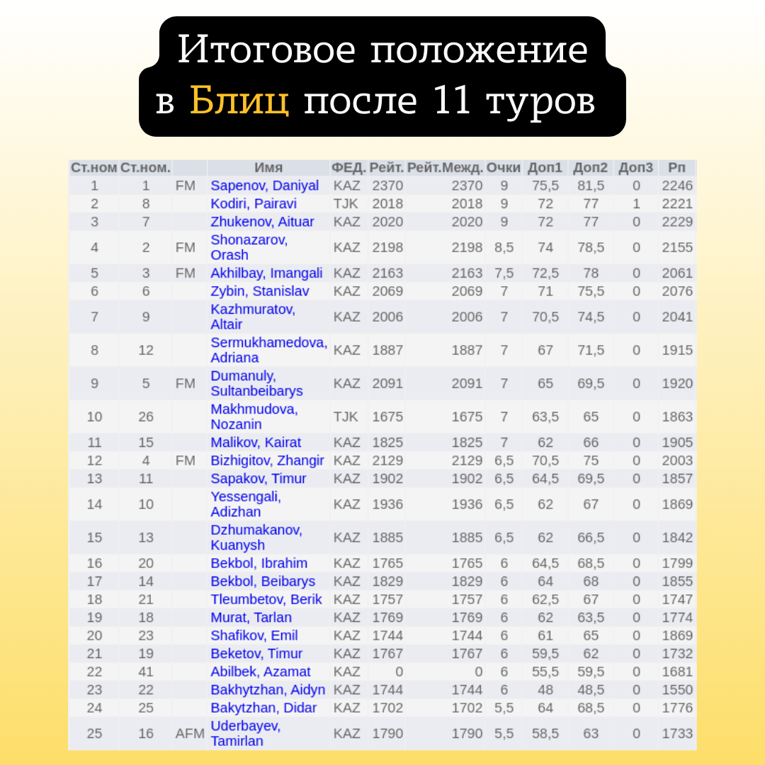🥇 FM Sapenov Daniyal (KAZ), 9 очков