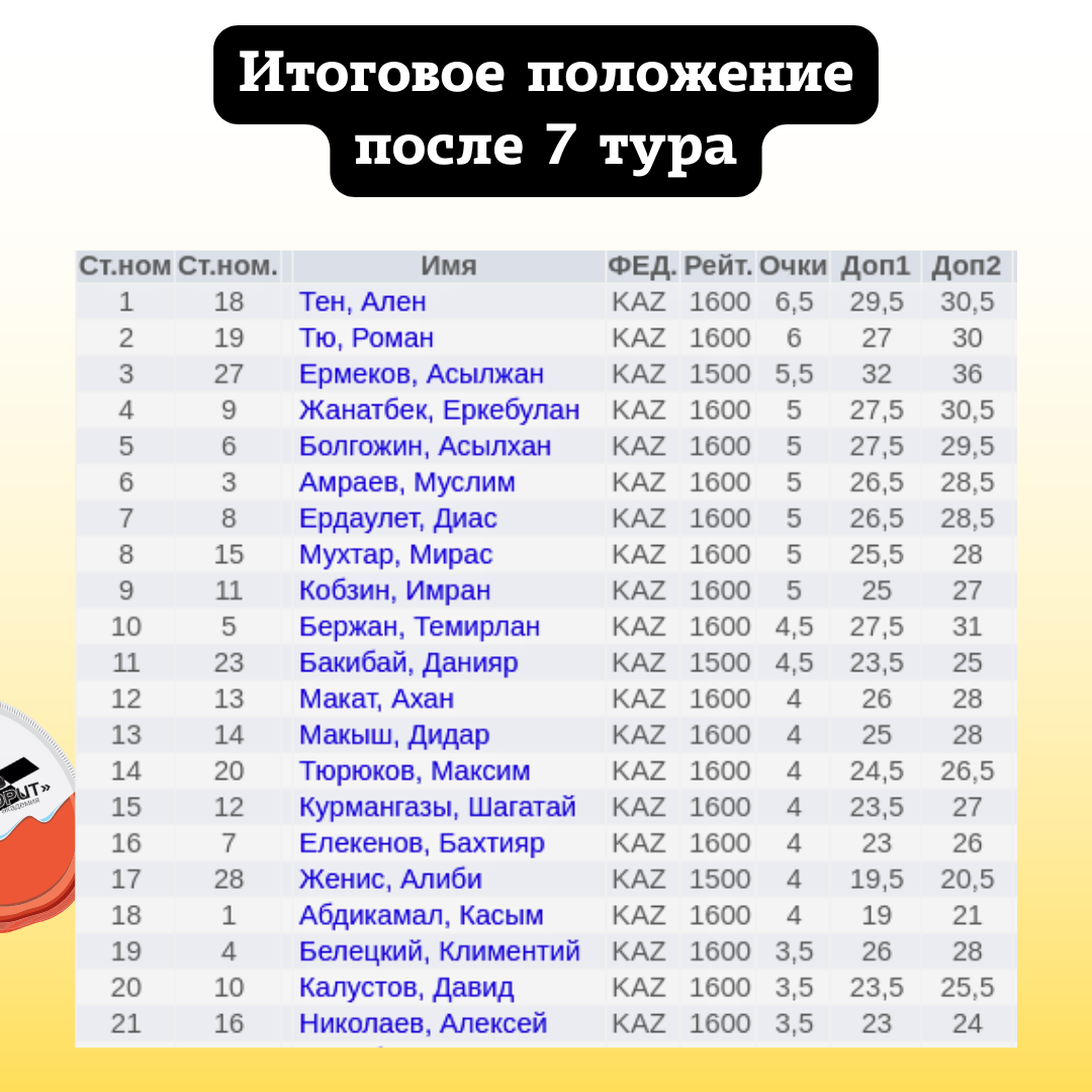 🧑🎓 Лучший среди 4-разрядников — Бакибай Данияр (4.5 очков)