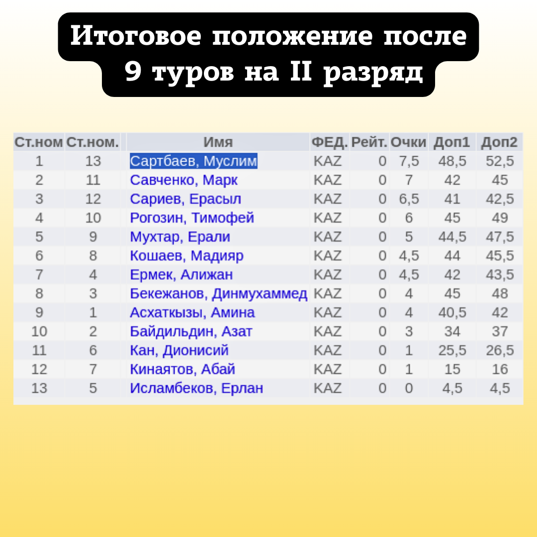 🥇 1-е место: Сартбаев, Муслим